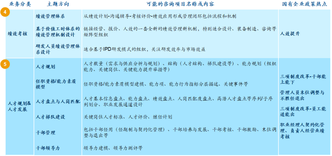 从业务到人才:公司战略与业务领域决定专业领域(序列),进而形成职级序列标准。围绕业务特点以及职级序列标准,构建人才评定机制,如项目管理序列任职资格标准包含基于项目制运作的项目管理能力等,进而形成人才培养机制。最终形成公司的“人才池”,可以根据业务的需要将“人”与“事”有效匹配。从业务到人才是从“人”的角度,职级是“人”的标签,用于和“事”的高效匹配。